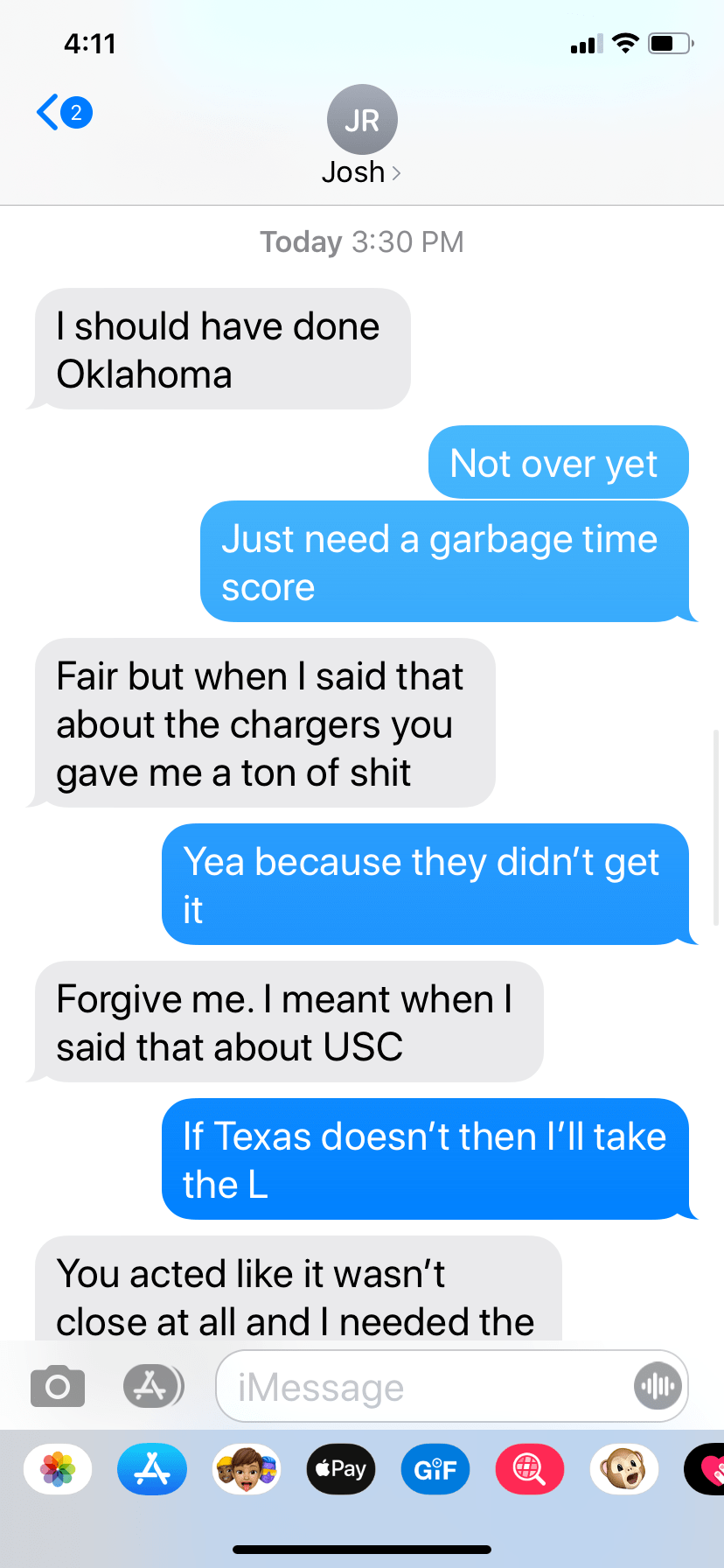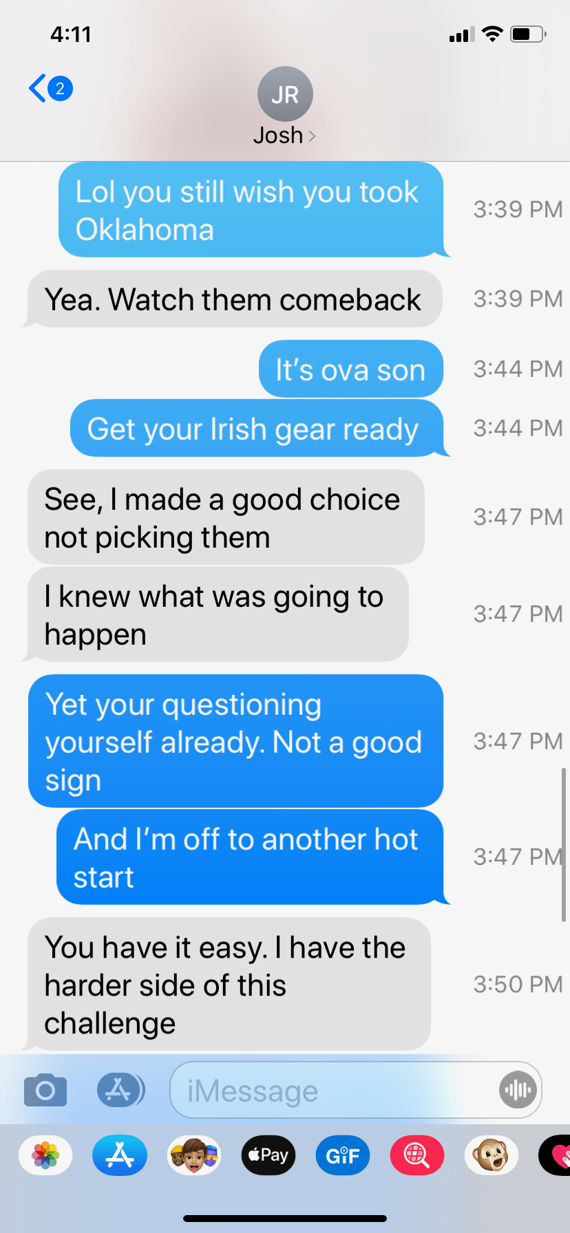 He texted Guster, saying that he should have taken Oklahoma (see evidence below). Once that happened, we knew we were saved.