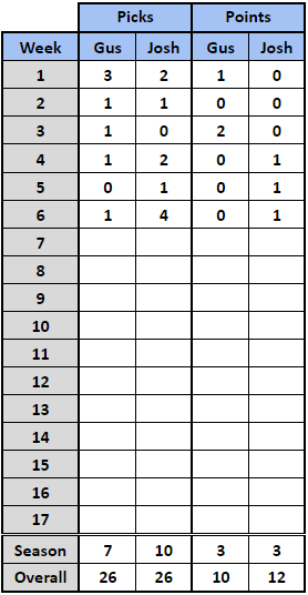 Posted on October 25, 2020 by guster69 3-3 Tied Pick Tracker: Week 7 Challenges: SEA -3.5 @ ARIOVER 56 SEA @ ARITB -4 @ LV Share this: Click to share on X (Opens in new window) X Click to share on Facebook (Opens in new window) Facebook Like Loading...